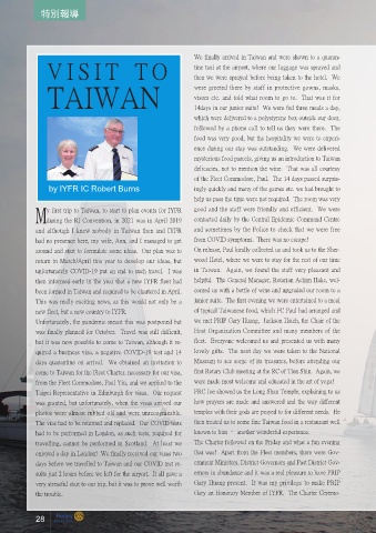 days before we travelled to Taiwan and our COVID test re- ernment Ministers, District Governors and Past District Gov-