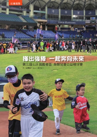 社會服務 揮出強棒 一起奔向未來 第三屆 LLB 挑戰者盃 身障兒童公益棒球賽 文 / 呂國雄 P Gary(海洋社) 14 14