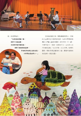 歌,是這麼唱的: 涓涓細流匯江海,點點纖塵積就山。扶輪 「大風起把頭搖一搖, 的公益精神在各個角落生根,為那些需要被鼓 風停了又挺直腰, 舞的人們獻上溫暖的關照,那怕只是一石一磚, 大雨來彎著背讓雨澆, 只要有能力, 將會一直傳承下去,這也是大左 雨停了抬起頭站直腳。 岸扶輪社創社「取之於斯、用之於斯」精神的 不怕風不怕雨立志要長高, 體現,期盼累積這細微的力量,讓善的循環成 小草實在是並不小。」 為社會的一股正能量。 30 總監月報 No.12 31 31