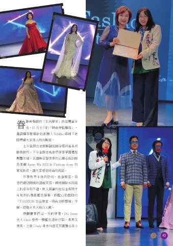 俐落;主委 Cindy 身著白底花草圖騰合身小