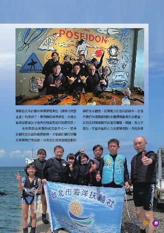 團隊也在本計劃的專案管理單位(海洋公民基 維持及永續性。在與地方社區的訪談中,社區 金會)的安排下,與西嶼鄉長李添進、小池社 代表們均感嘆澎湖的生態環境破壞日益嚴重, 區發展協會及小池角在地業者進行深度交流。 以前走到海邊就可以看到珊瑚、海膽,現已不 全球獎助金專案的成功要件之一,就是 復見。受益社區的人力及資源有限,因此非常 計劃受益社區的高度參與,才能讓計劃在扶輪 社專案執行完成後,由受益社區承擔起計劃的 24 總監月報 No.5 25 25