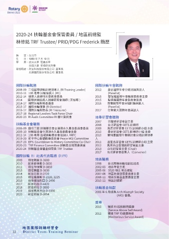 2020-24 扶輪基金會基金保管員 TRF Trustee 2013 台北研習會主委 (Chair)
