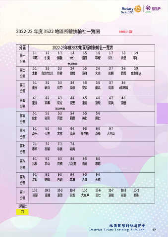 分區 2022-23年度3522地區所轄扶輪社一覽表