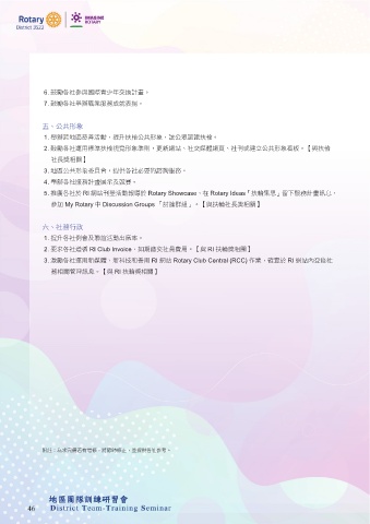 5. 推廣各社於 RI 網站刊登活動報導於 Rotary Showcase、在 Rotary Ideas「扶輪集思」留下服務計畫訊息,