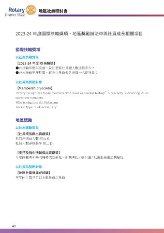 2023-24 年度國際扶輪獎項、地區獎勵辦法中與社員成長相關項目